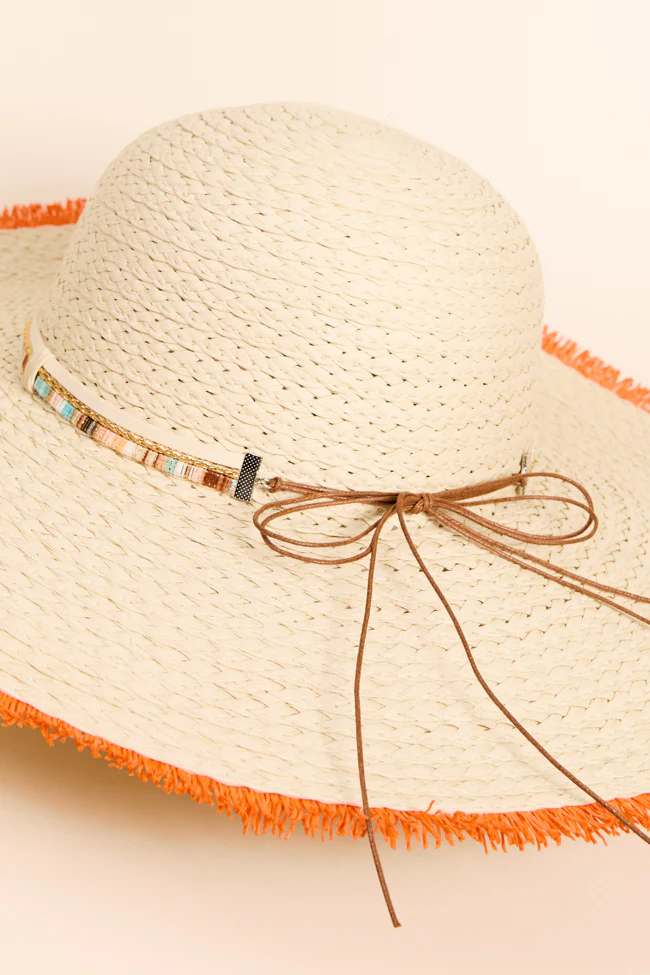 Natural Orange Fringe Trim Straw Hat FINAL SALE