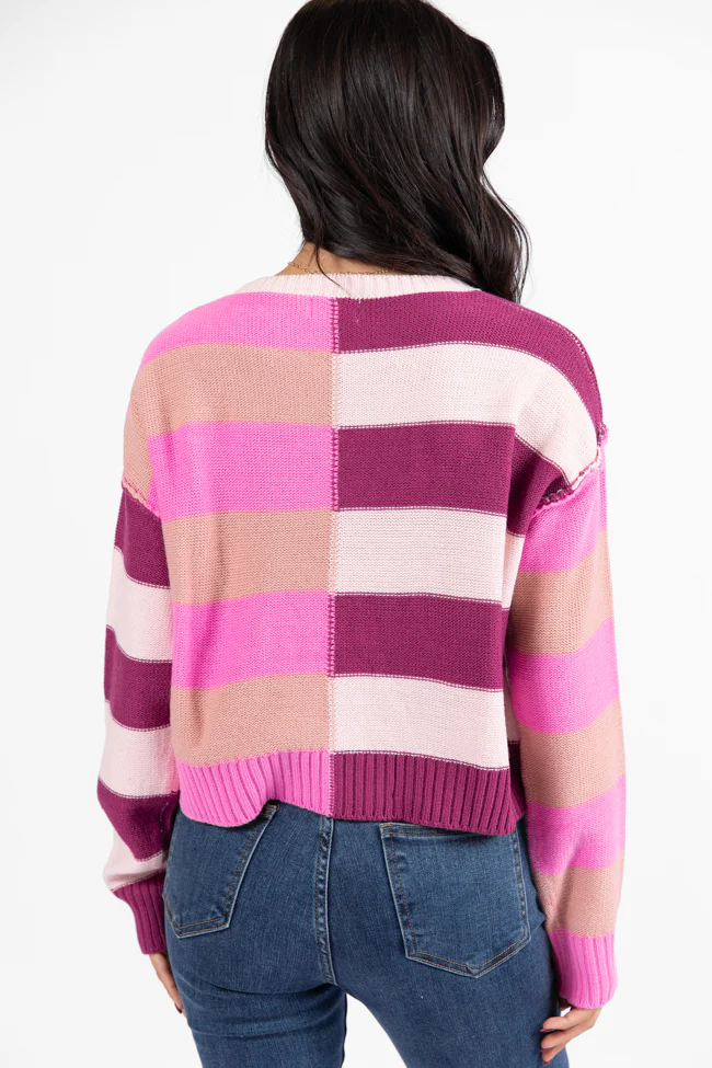 Take Your Time Pink and Berry Multi Color Block Striped Crop Sweater FINAL SALE