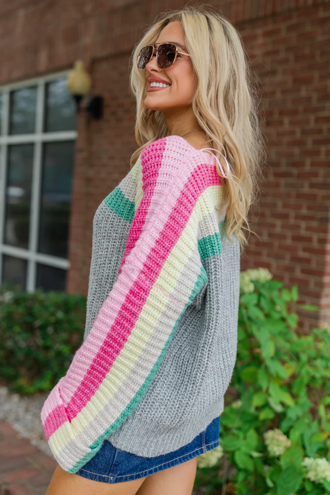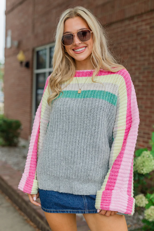 Share Your Story Heather Grey Multi Colorblock Boat Neck Sweater FINAL SALE