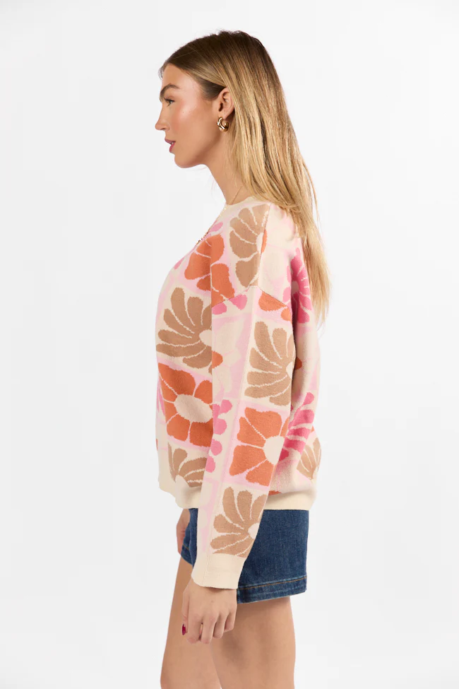 Gracious Gardens Coral Multi Block Floral Sweater FINAL SALE