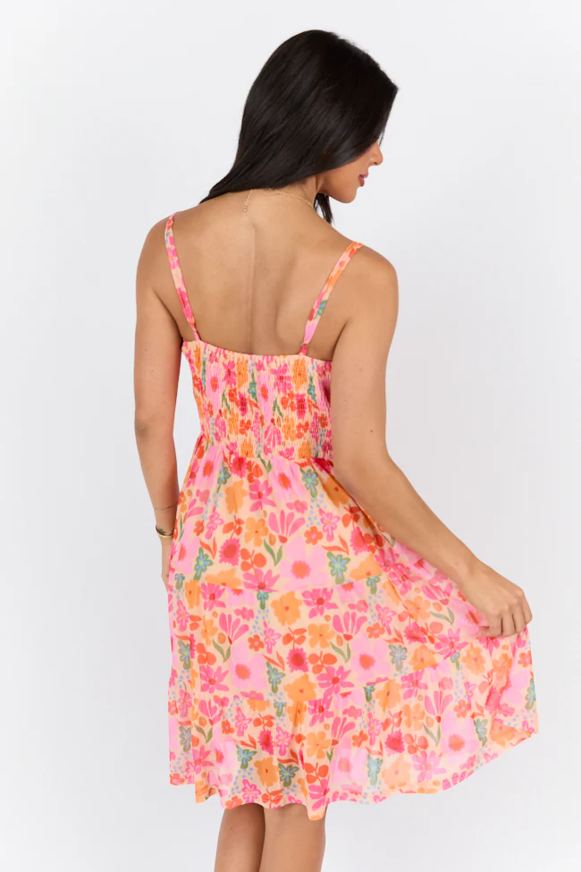 I Know A Place Orange And Pink Floral Smocked Mini Dress FINAL SALE