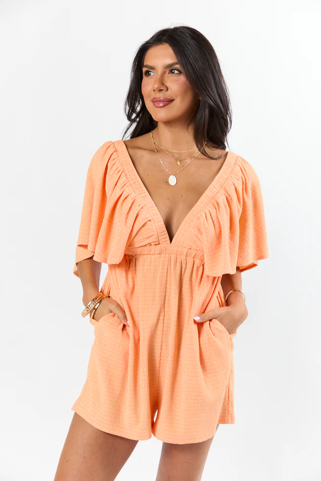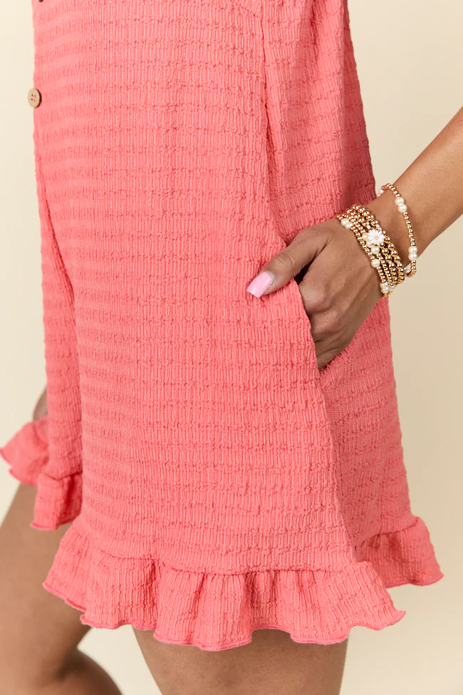 Last Summer Coral Ruffle Hem Romper FINAL SALE
