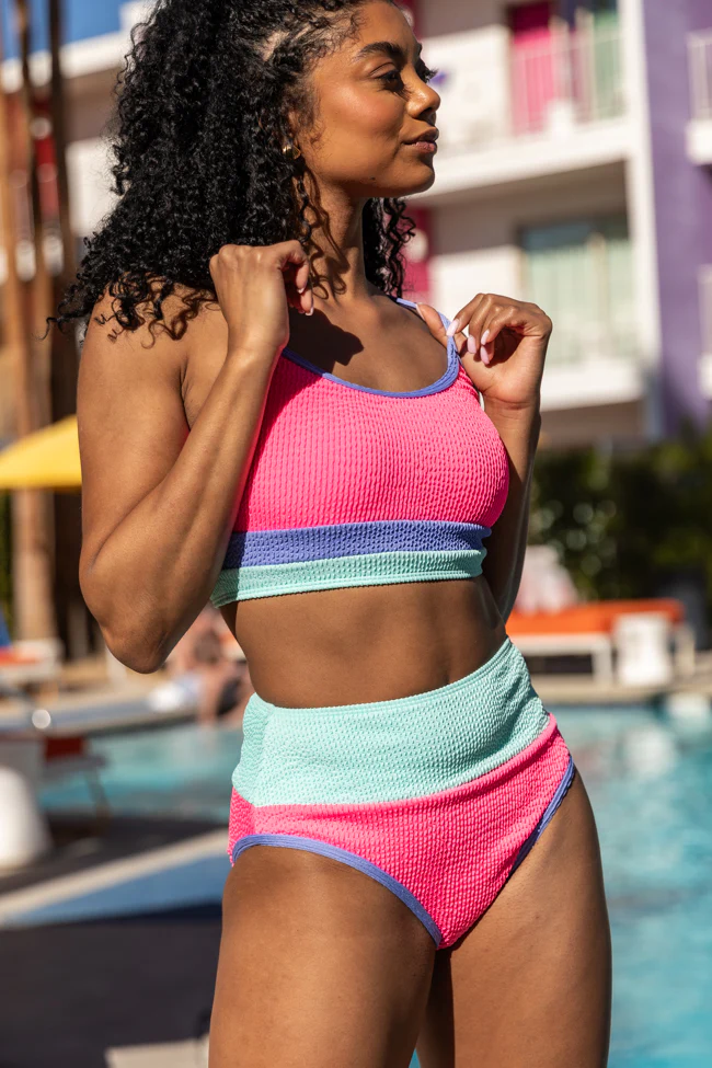 Do Not Disturb Pink and Green Color Block Bikini Top FINAL SALE
