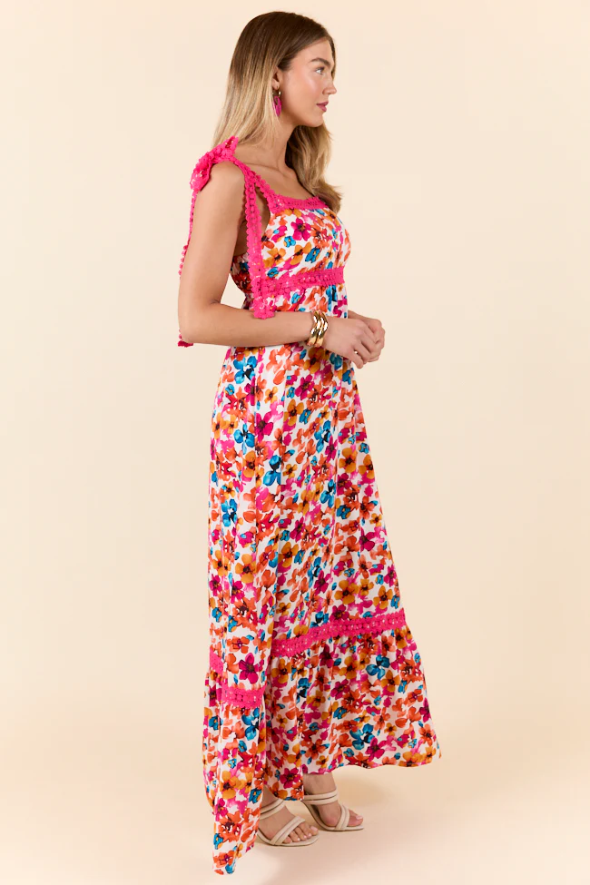 Come Along With Me Pink Trim Floral Maxi Dress FINAL SALE