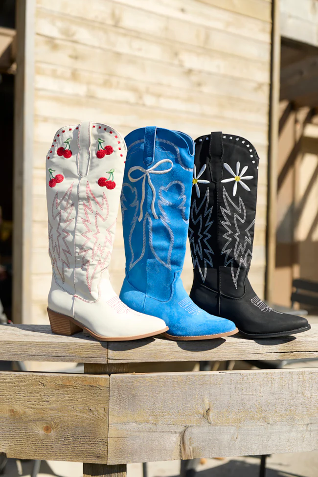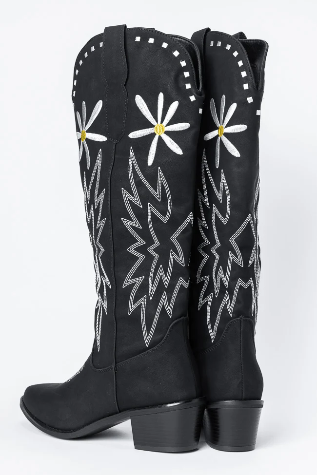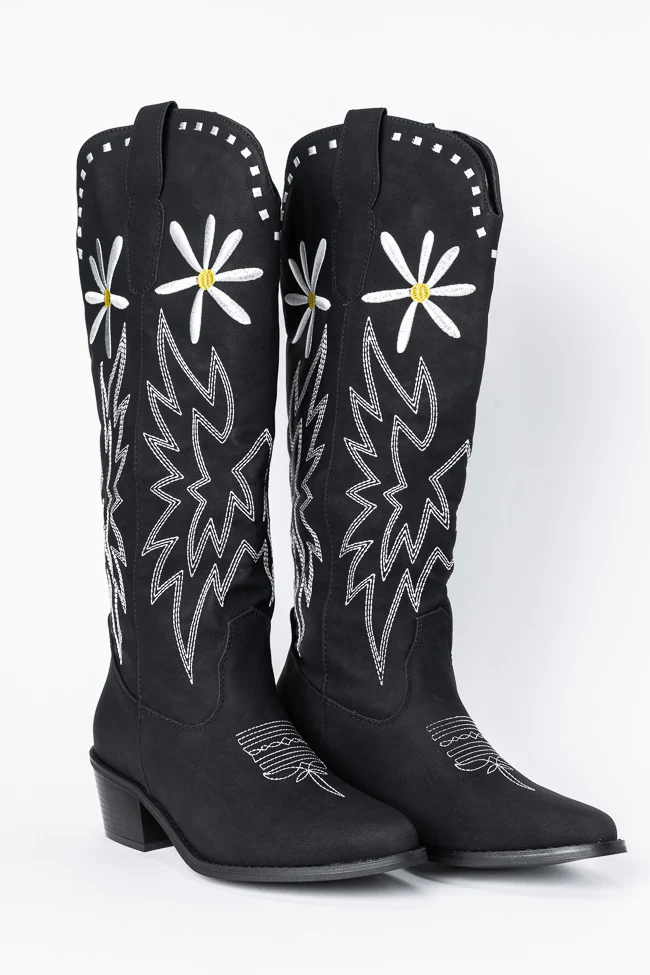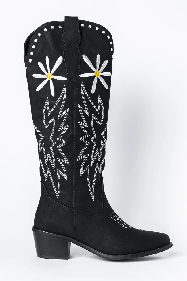 Shania Black Cowboy Boots With Contrast Stitching SALE