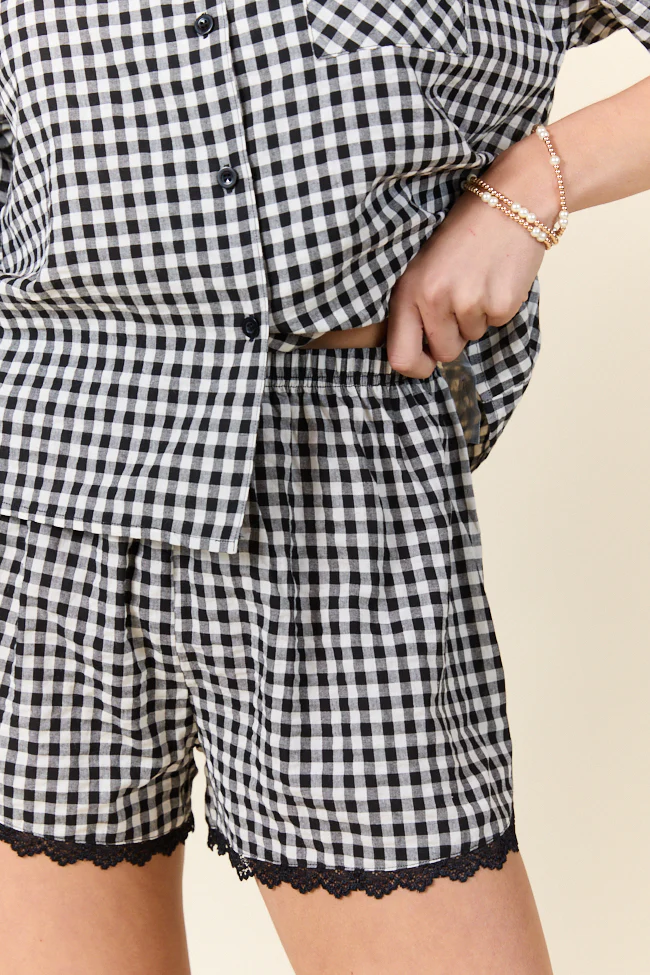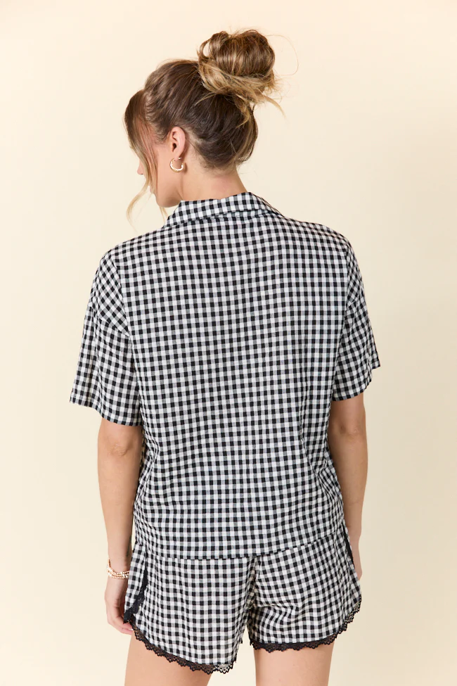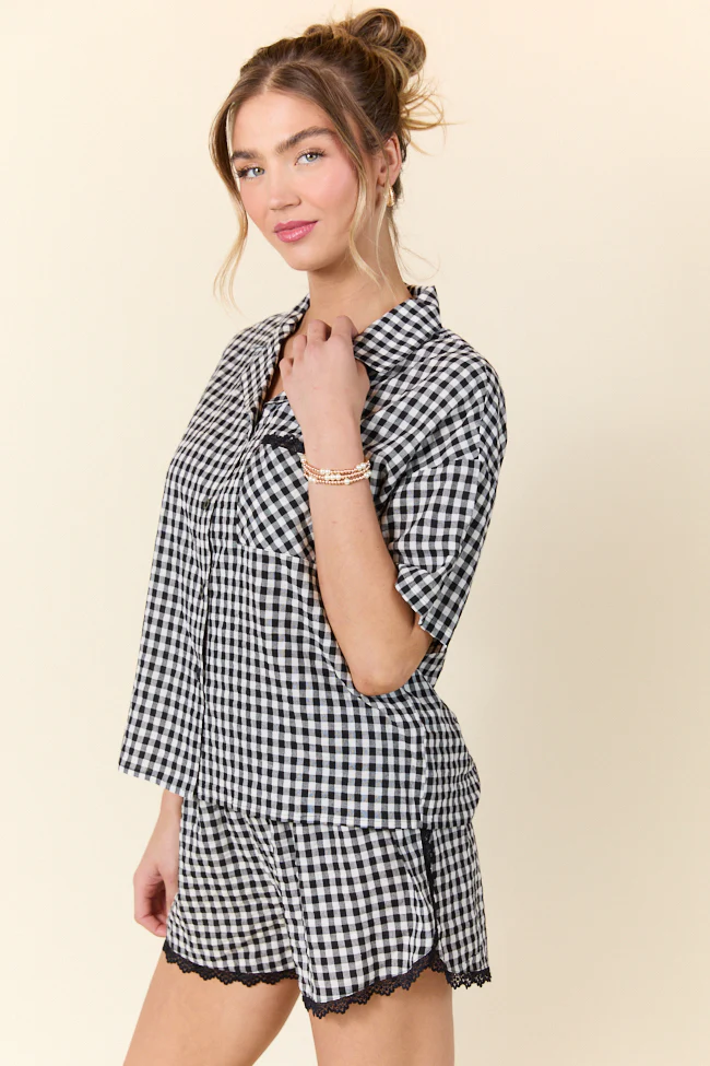 Peaceful Mornings Black Gingham Short Sleeve Pajama Set DOORBUSTER