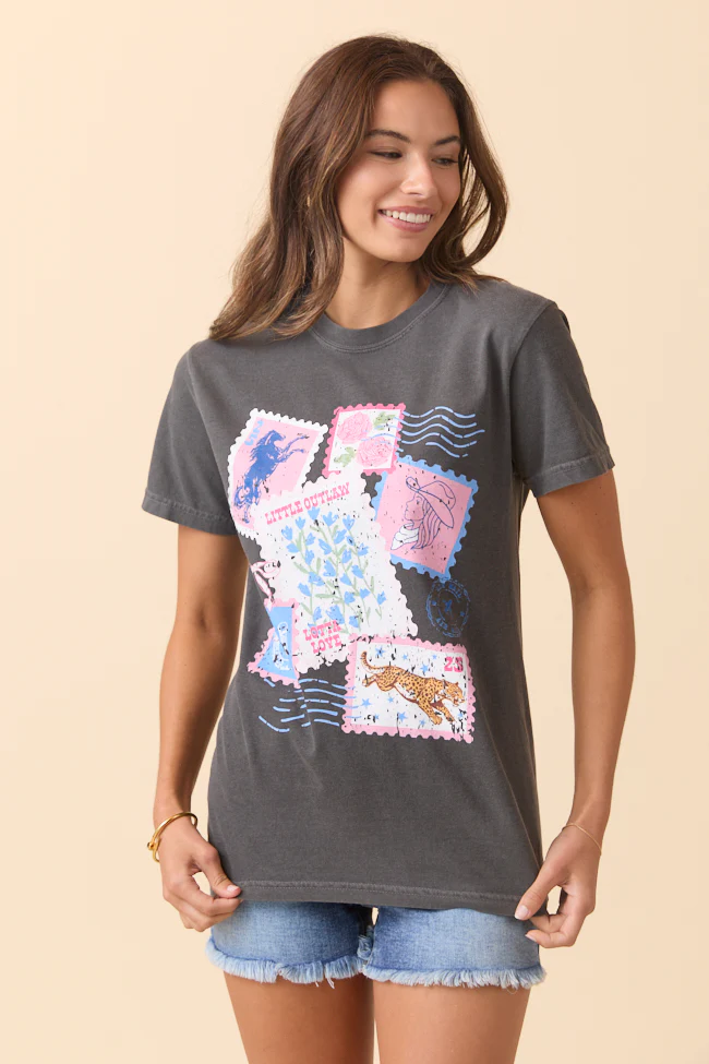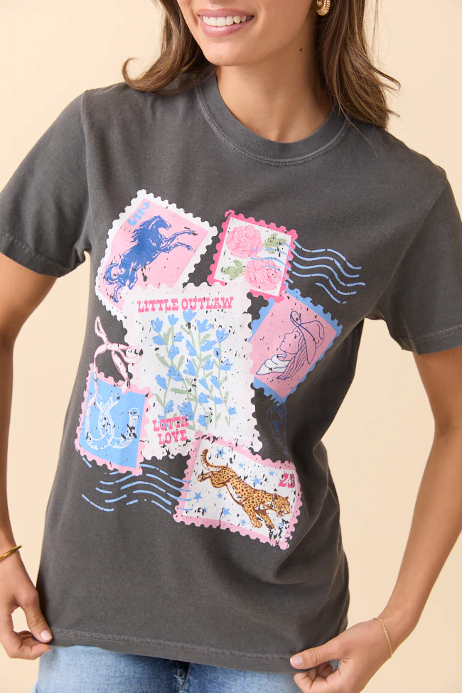 Outlaw Stamp Collection Dark Grey Graphic Tee Just Classically Cassidy X Pink Lily