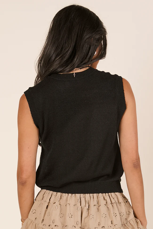 Natalie Sleeveless Black Knot Front Sweater Tank
