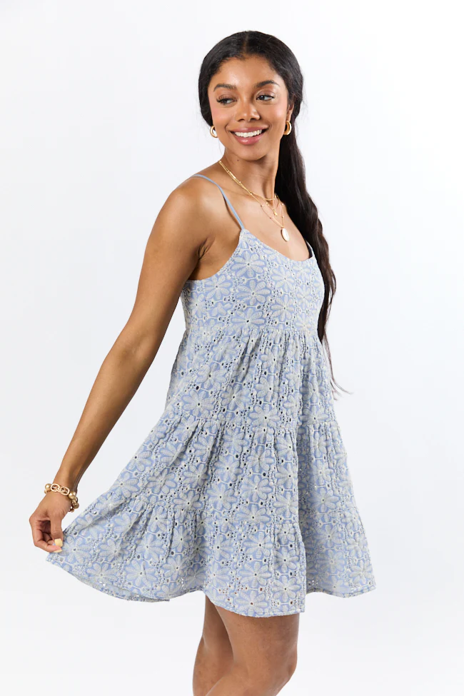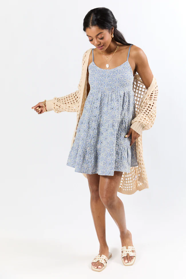 Let's Get Out Of Town White Flower Eyelet Mini Dress