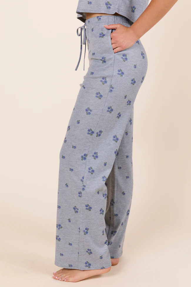 Lainey Waffle Knit Blue Floral Pajama Pants