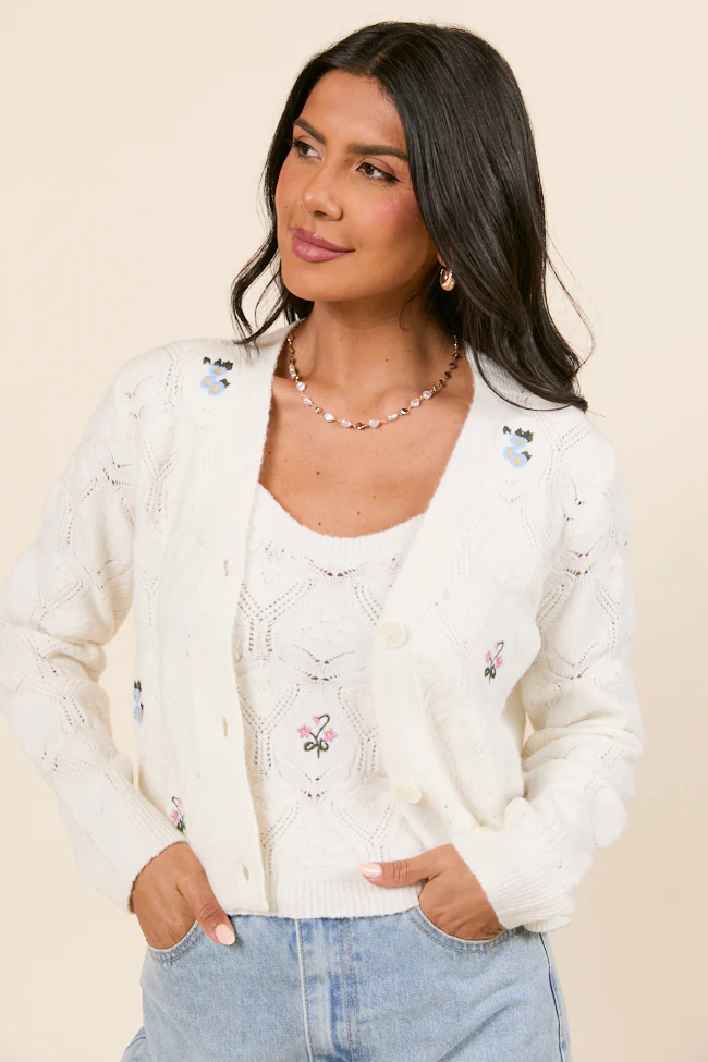 Just Feels Right Off-White Embroidered Pants FINAL SALE