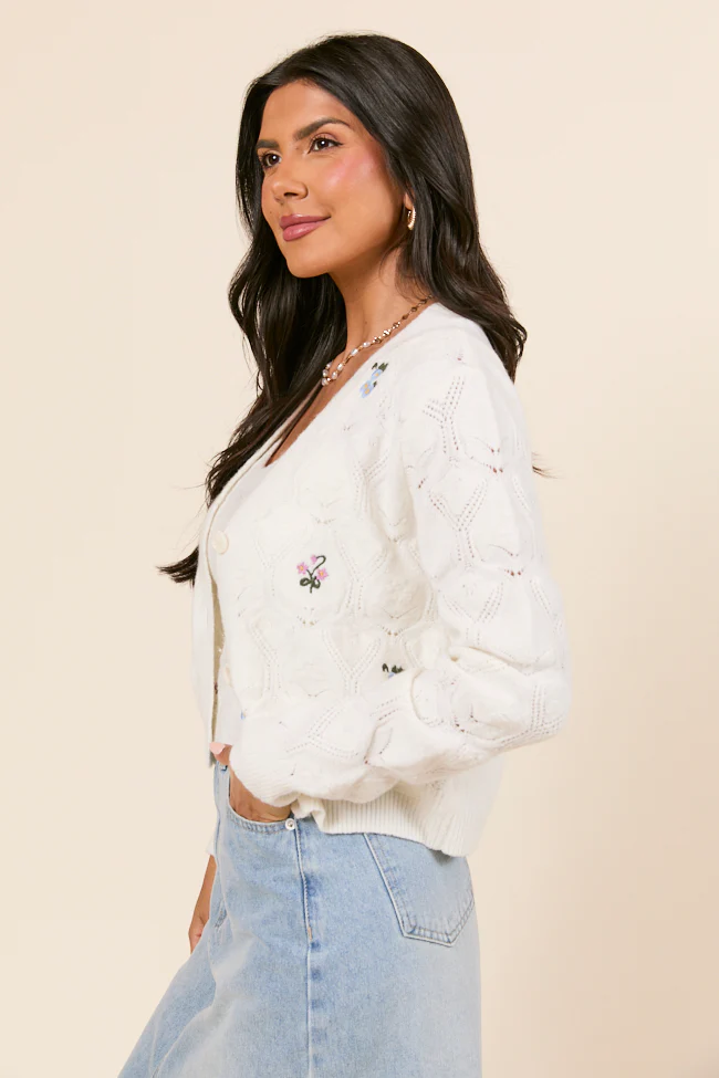 Just Focus Ivory Florette Long Sleeve Shirt FINAL SALE