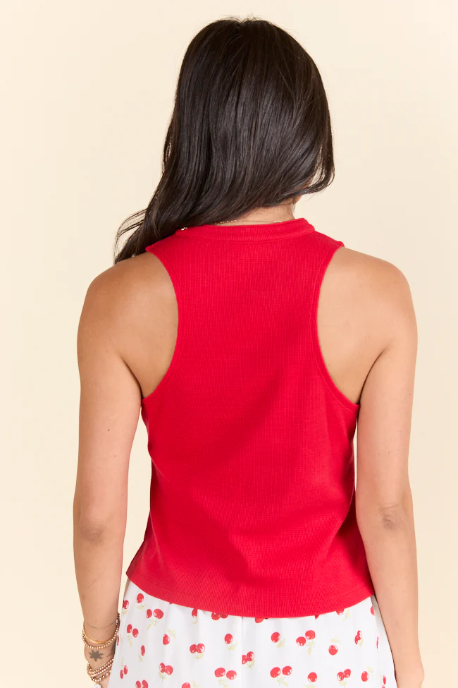 Just Breathe Red Waffle Knit Lounge Tank FINAL SALE