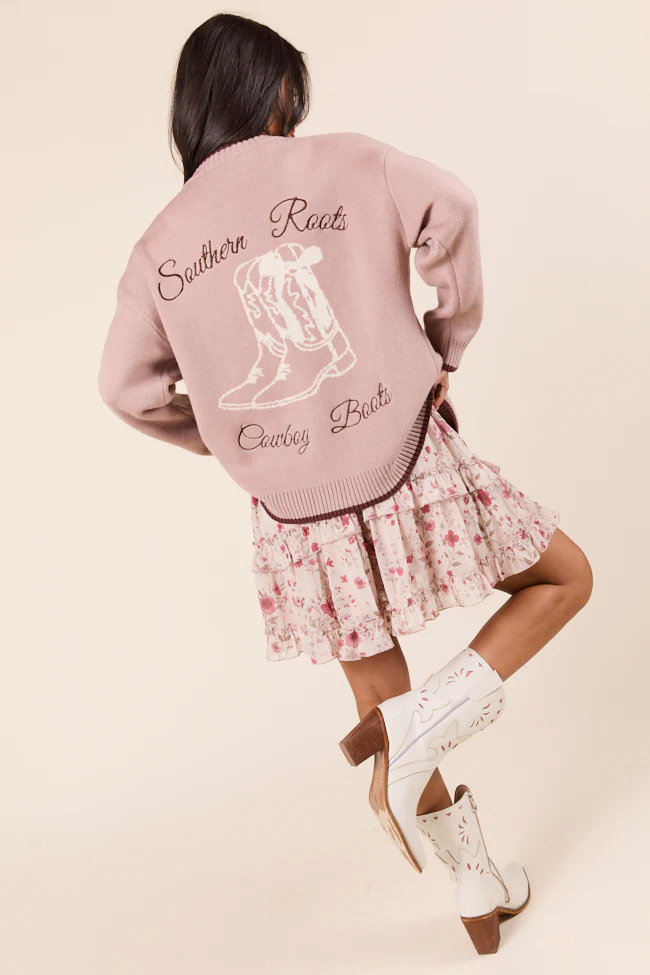 Jesse Mauve Southern Roots Cowboy Boots Cardigan