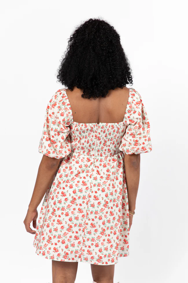 I'm Just A Girl Ivory and Red Rosette Printed Mini Dress FINAL SALE
