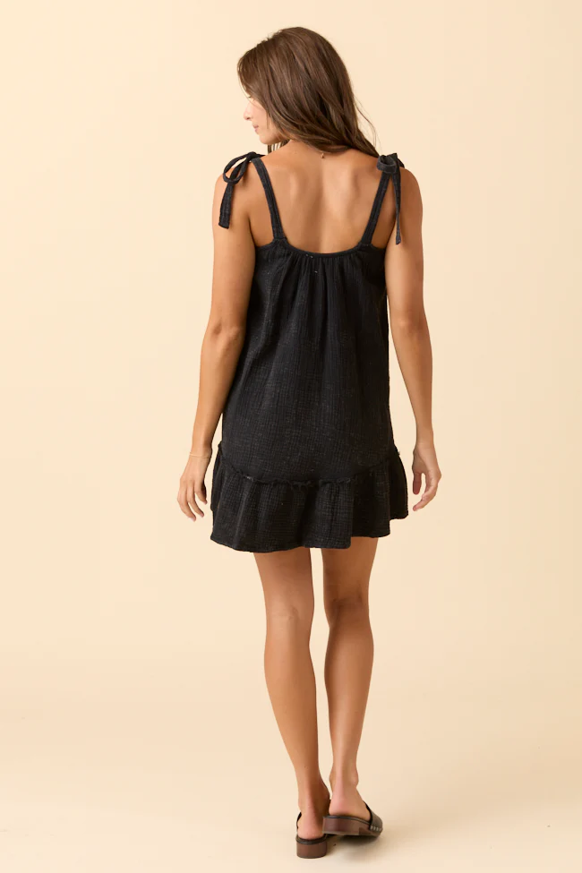Up To Me Medium Wash Lace Up Detail Chambray Dress FINAL SALE