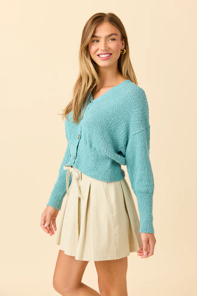 Anneliese Black Waffle Henley Top DOORBUSTER