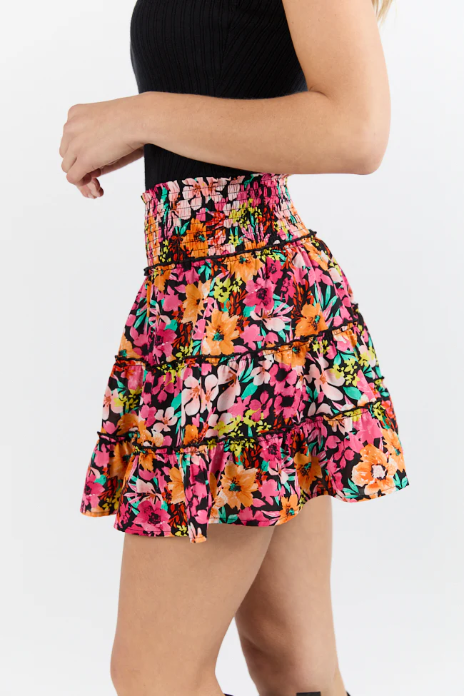 Through The Garden Black Multi Color Floral Mini Skort FINAL SALE