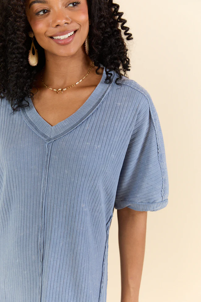 It's Our Time Grey Oversized Pocketed Waffle Tee FINAL SALE
