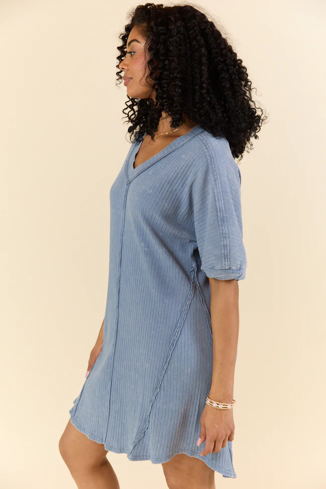 High Temperatures Blue Acid Wash Knit Dress FINAL SALE