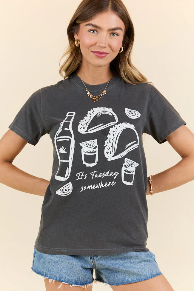 It's Tuesday Somewhere Dark Grey Graphic Tee